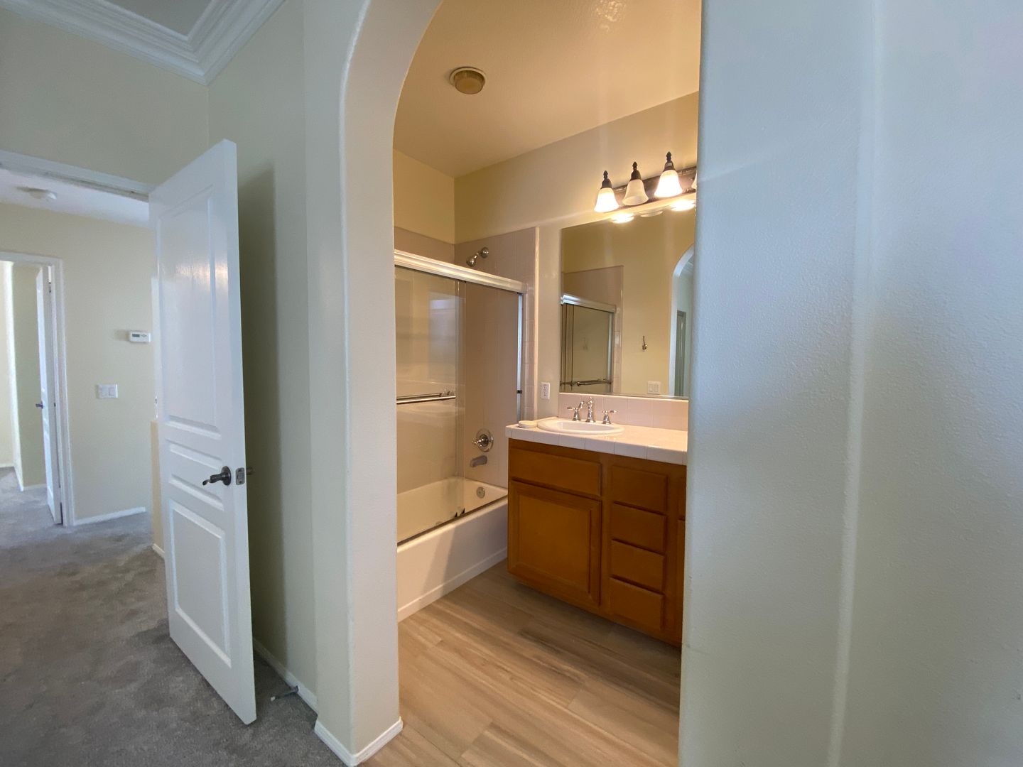 Three bedroom, three and half bathroom home for rent in Irvine neighborhood of Quail Hill with many amenities. Full bedroom and bathroom located on first level with door to side patio. Kitchen, Livingroom and Dining area are located on level two with gas fireplace, ceiling fans and two small balconies. Main bedroom suite has walk in closet and double sink bathroom. A small built in desk is located between second and third floors offering a small private office. All windows have blinds and bedrooms have ceiling fans. Tile entry and kitchen and dining room. Carpeting in living room and bedrooms. Laundry room off two car garage located on first level. All 18 and over MUST apply on Shedlock Properties website.